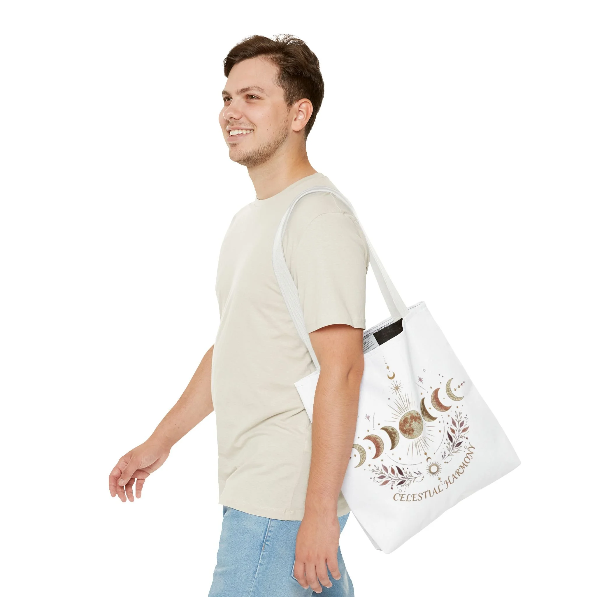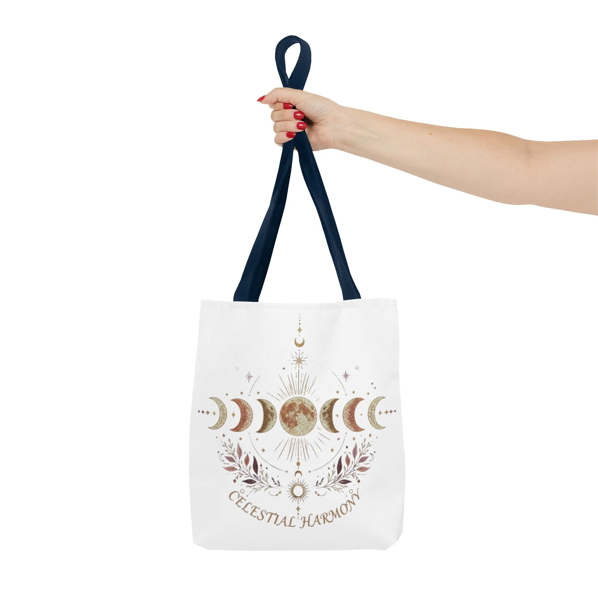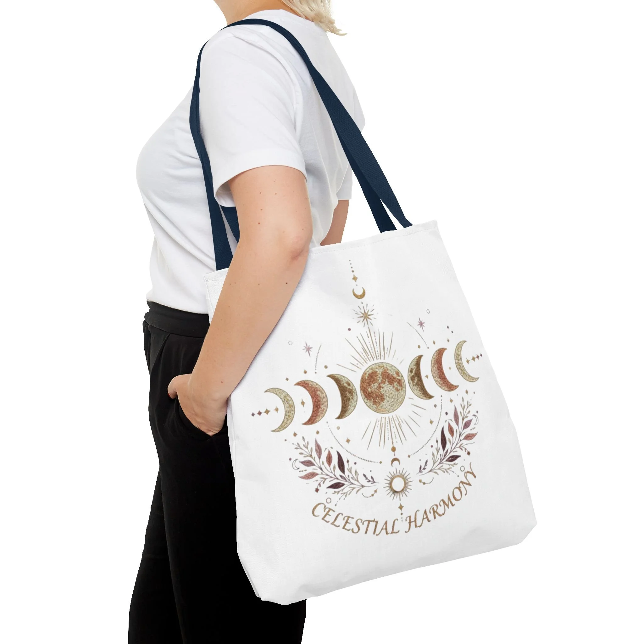 Celestial Harmony Tote Bag — Moon Phase Canvas AOP Tote for Astrology Lovers