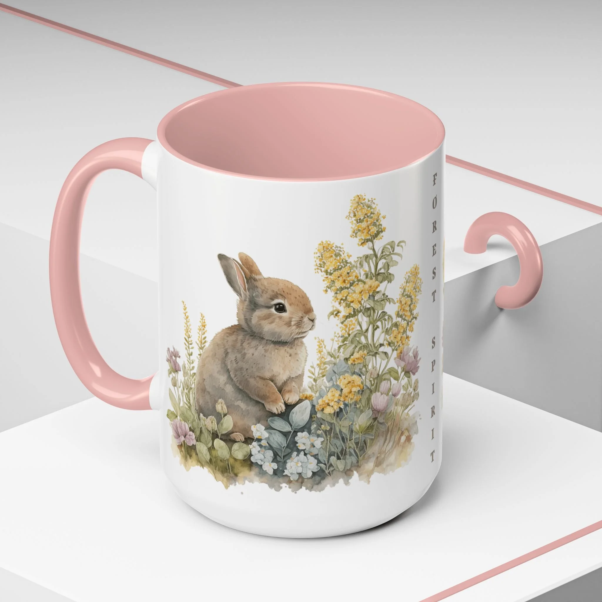 Our “Forest Spirit” Bunny Coffee Mug features a sweet, gentle bunny surrounded by delicate wildflowers—capturing the quiet beauty of nature in a soft watercolor design.