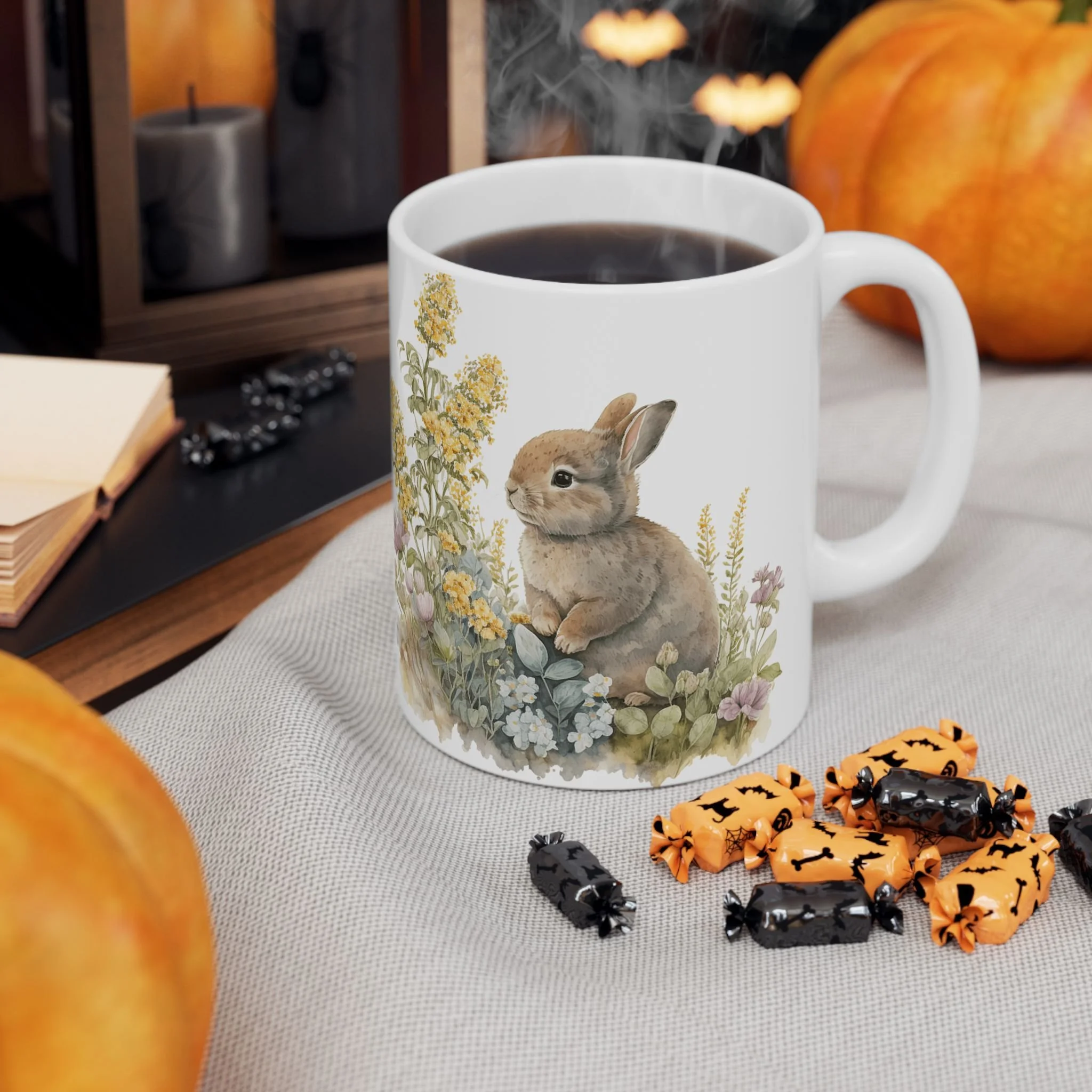 Our “Forest Spirit” Bunny Coffee Mug features a sweet, gentle bunny surrounded by delicate wildflowers—capturing the quiet beauty of nature in a soft watercolor design.