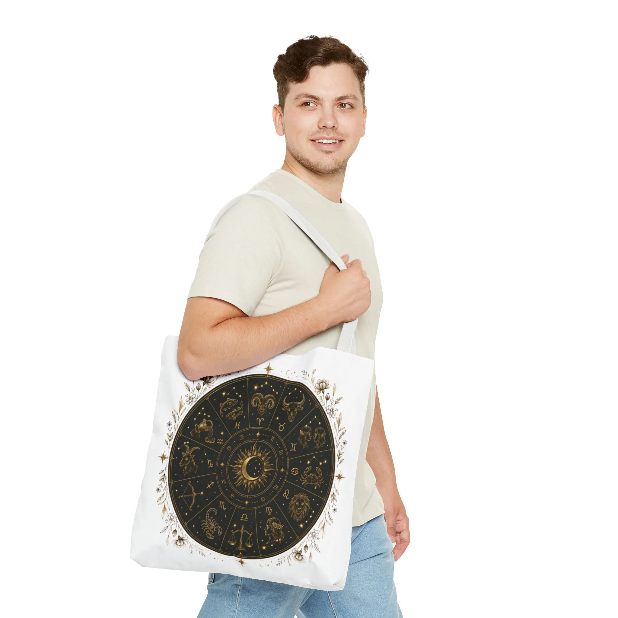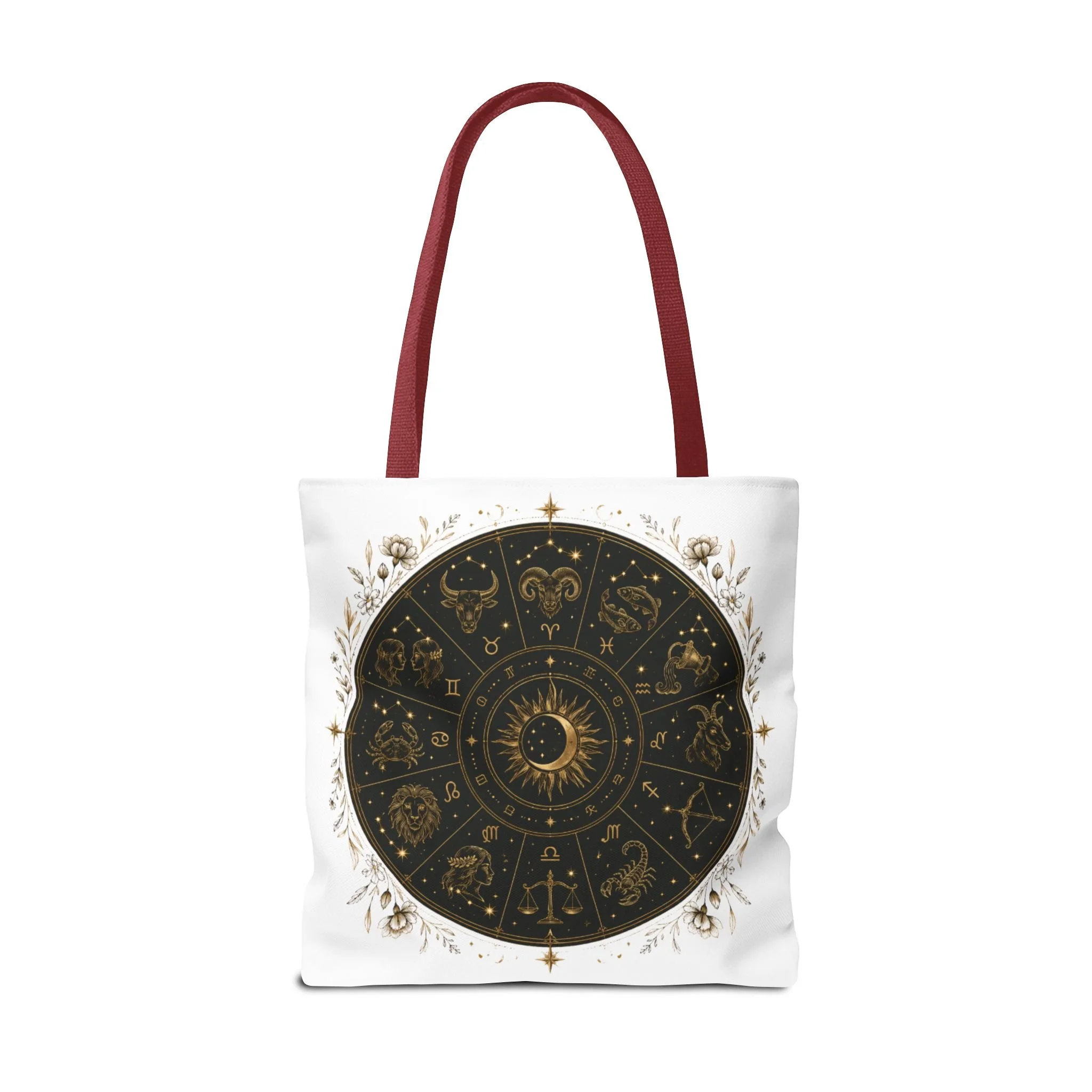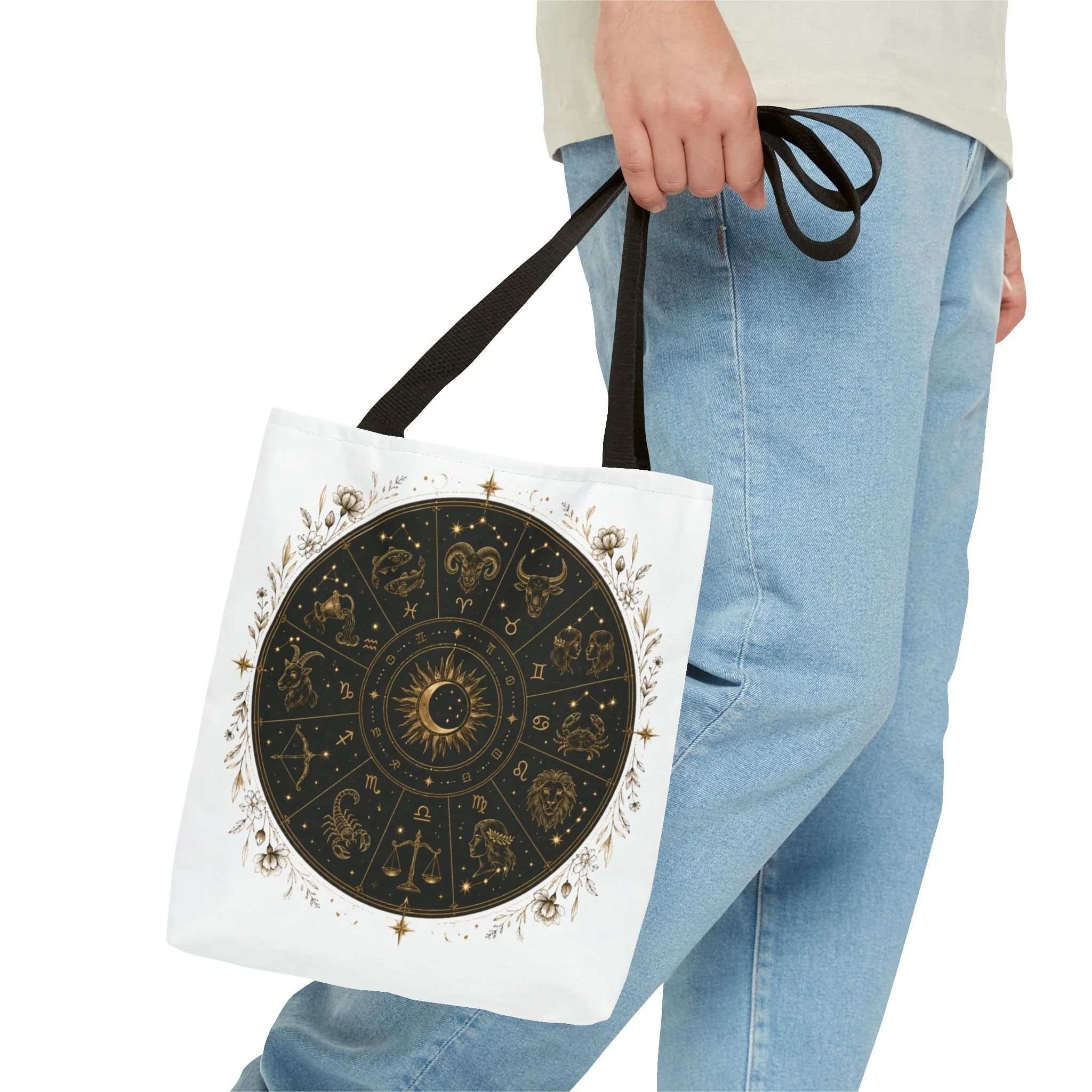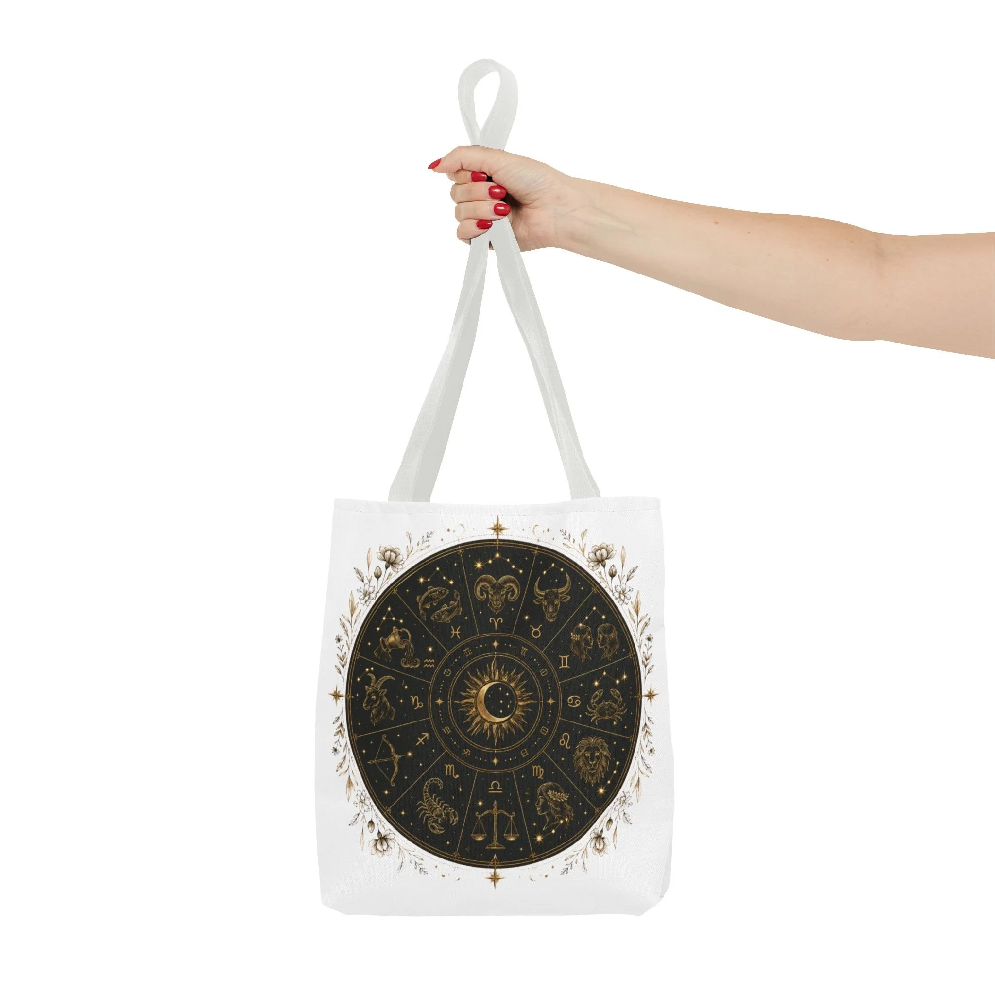 It also makes a thoughtful gift for astrology fans, zodiac lovers, crystal lovers, tarot readers, stargazers, spiritual friends, and cosmic souls. Carry a night sky of symbols with you—this tote blends vintage astrology with modern utility. A deep, circular chart in matte black and antique gold sits centered on clean white fabric, framed by delicate flourishes that feel both old-world and quietly magical. The roomy interior and boxed corners hold groceries, books, ritual tools, or a laptop sleeve, while the reinforced handles and crisp stitching mean it moves through daily life without drama. It’s the kind of tote that becomes part of your routine: for market runs at dawn, sketching sessions in dim cafés, or slow evenings arranging crystals and candles. Subtle, evocative, and built to last.