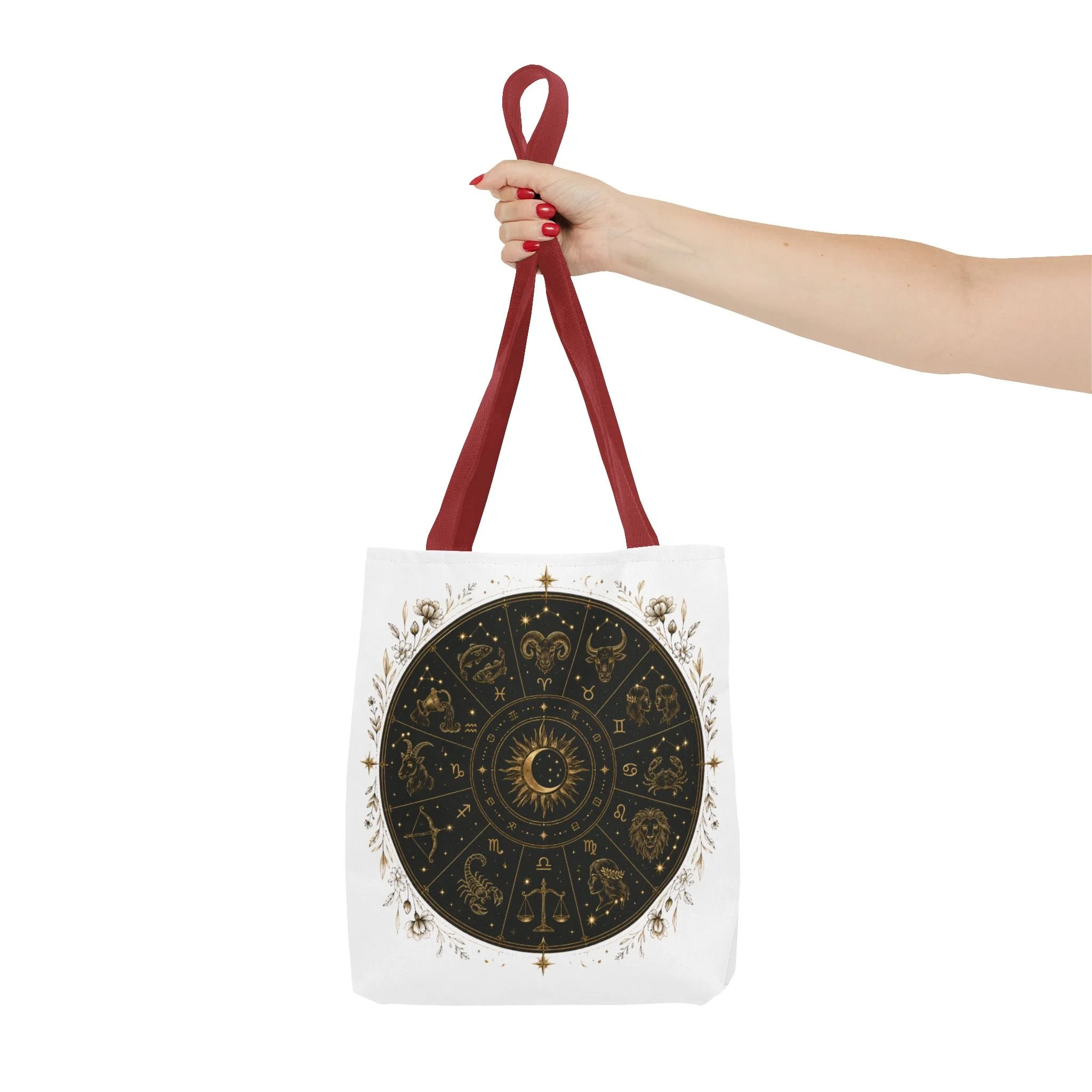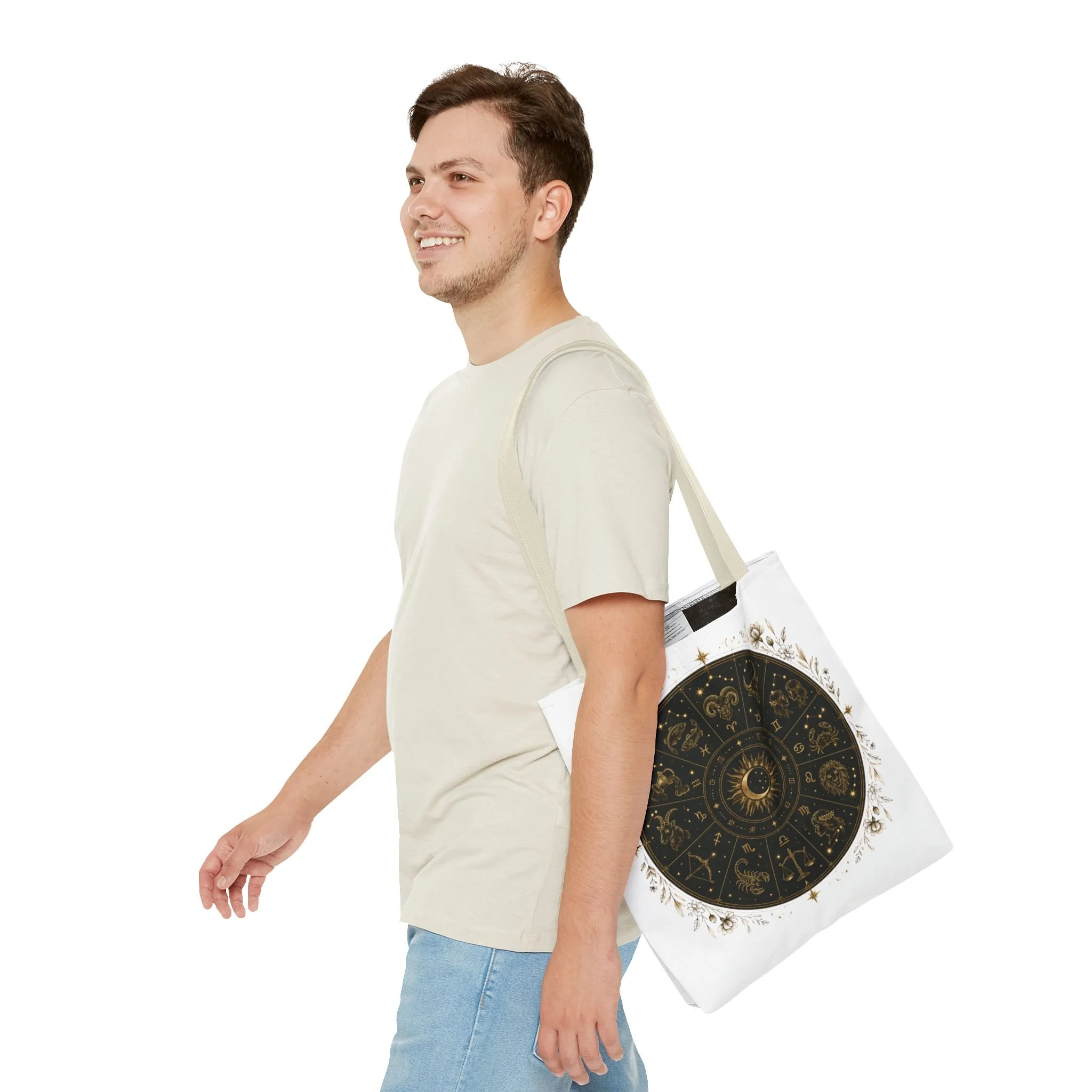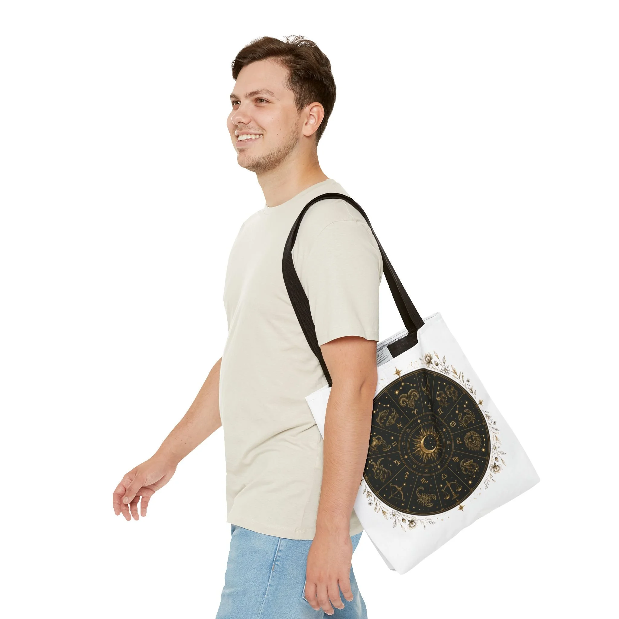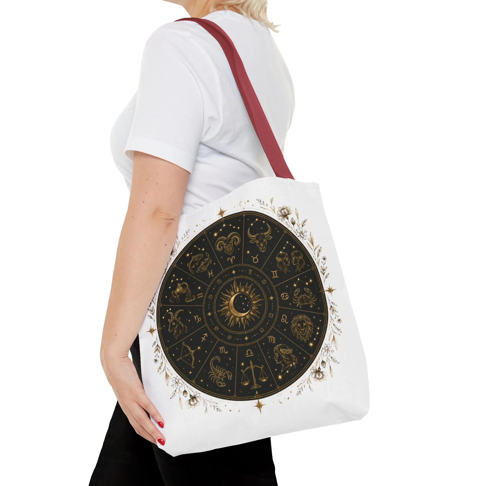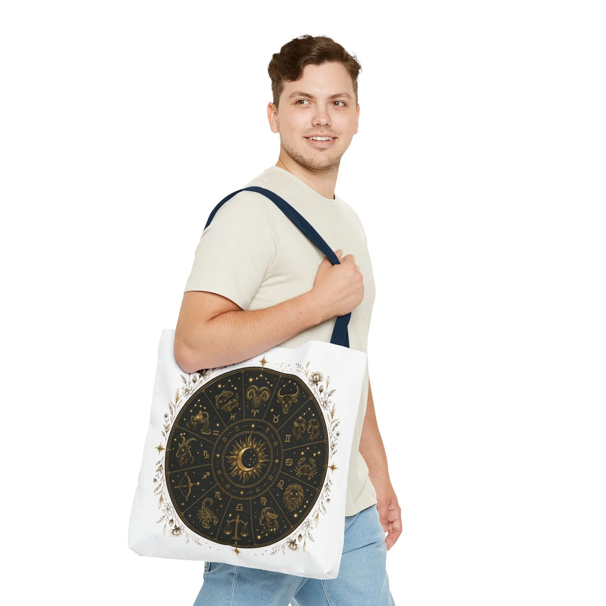 It also makes a thoughtful gift for astrology fans, zodiac lovers, crystal lovers, tarot readers, stargazers, spiritual friends, and cosmic souls. Carry a night sky of symbols with you—this tote blends vintage astrology with modern utility. A deep, circular chart in matte black and antique gold sits centered on clean white fabric, framed by delicate flourishes that feel both old-world and quietly magical. The roomy interior and boxed corners hold groceries, books, ritual tools, or a laptop sleeve, while the reinforced handles and crisp stitching mean it moves through daily life without drama. It’s the kind of tote that becomes part of your routine: for market runs at dawn, sketching sessions in dim cafés, or slow evenings arranging crystals and candles. Subtle, evocative, and built to last.