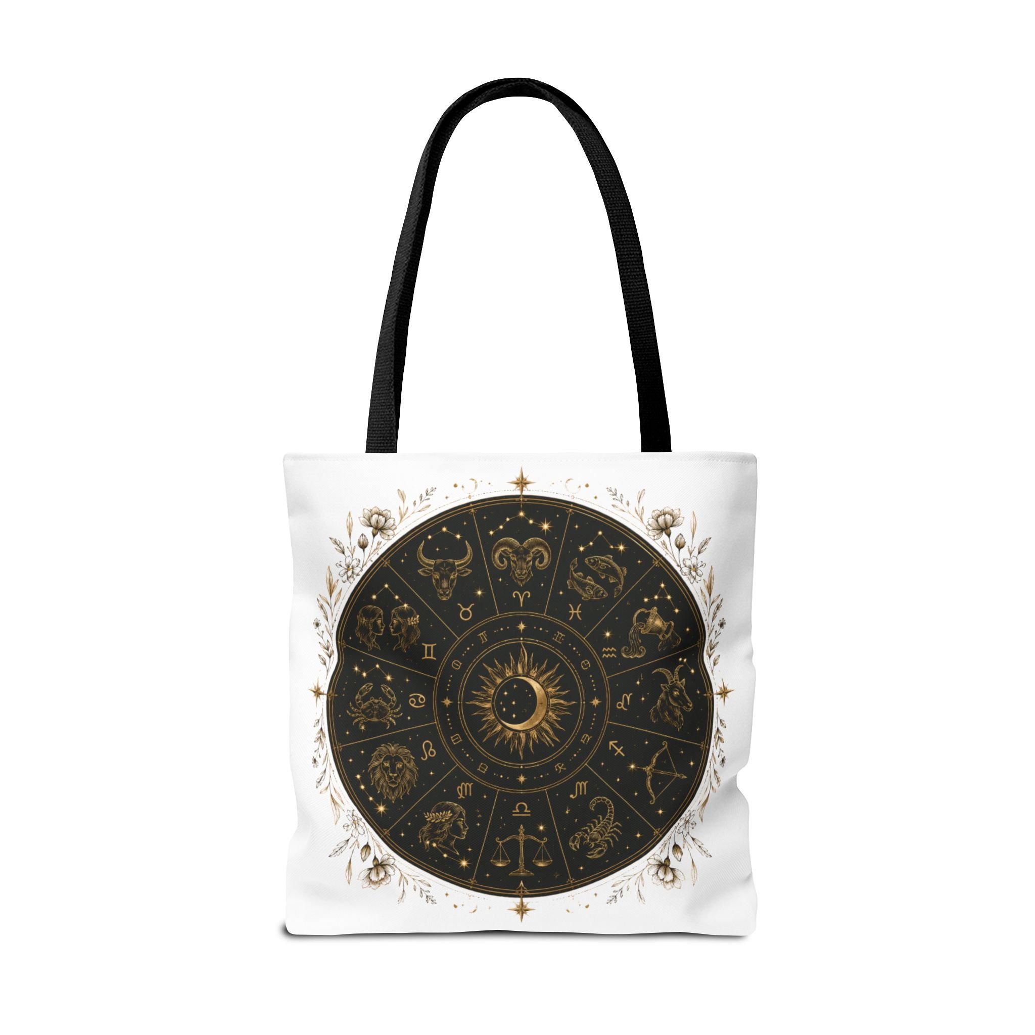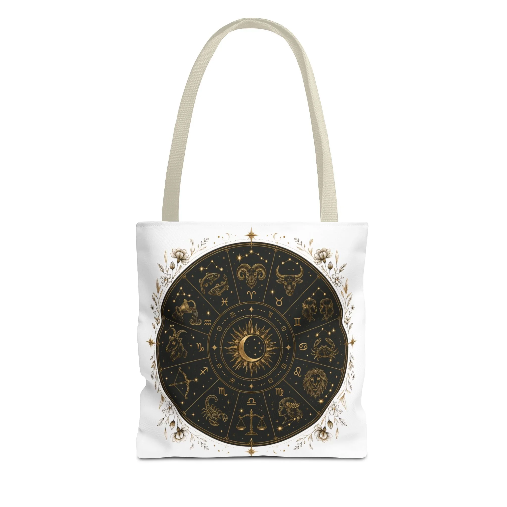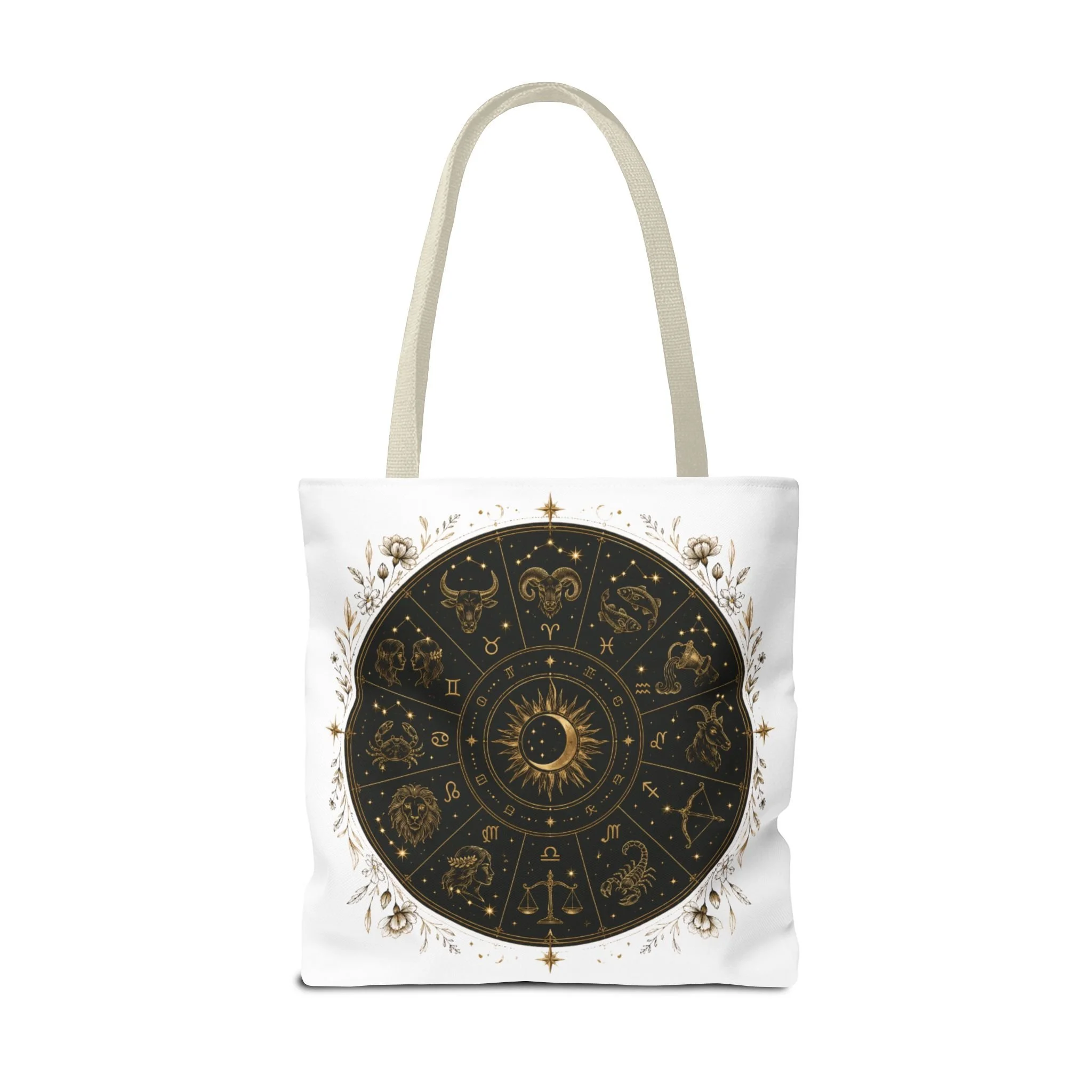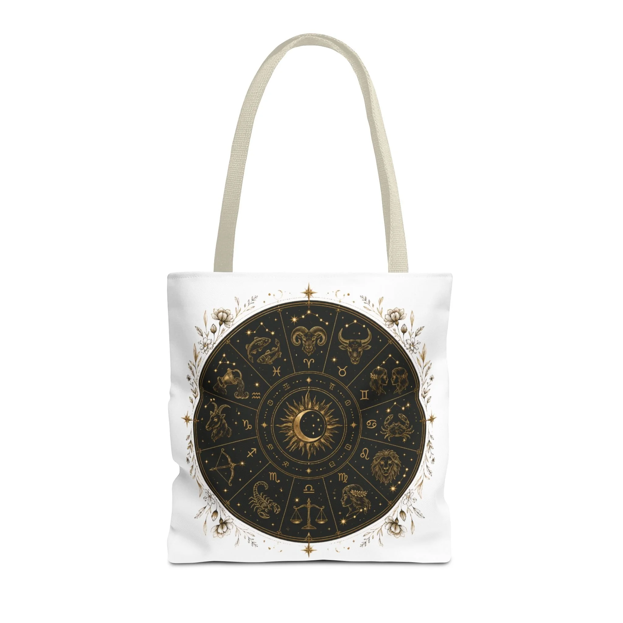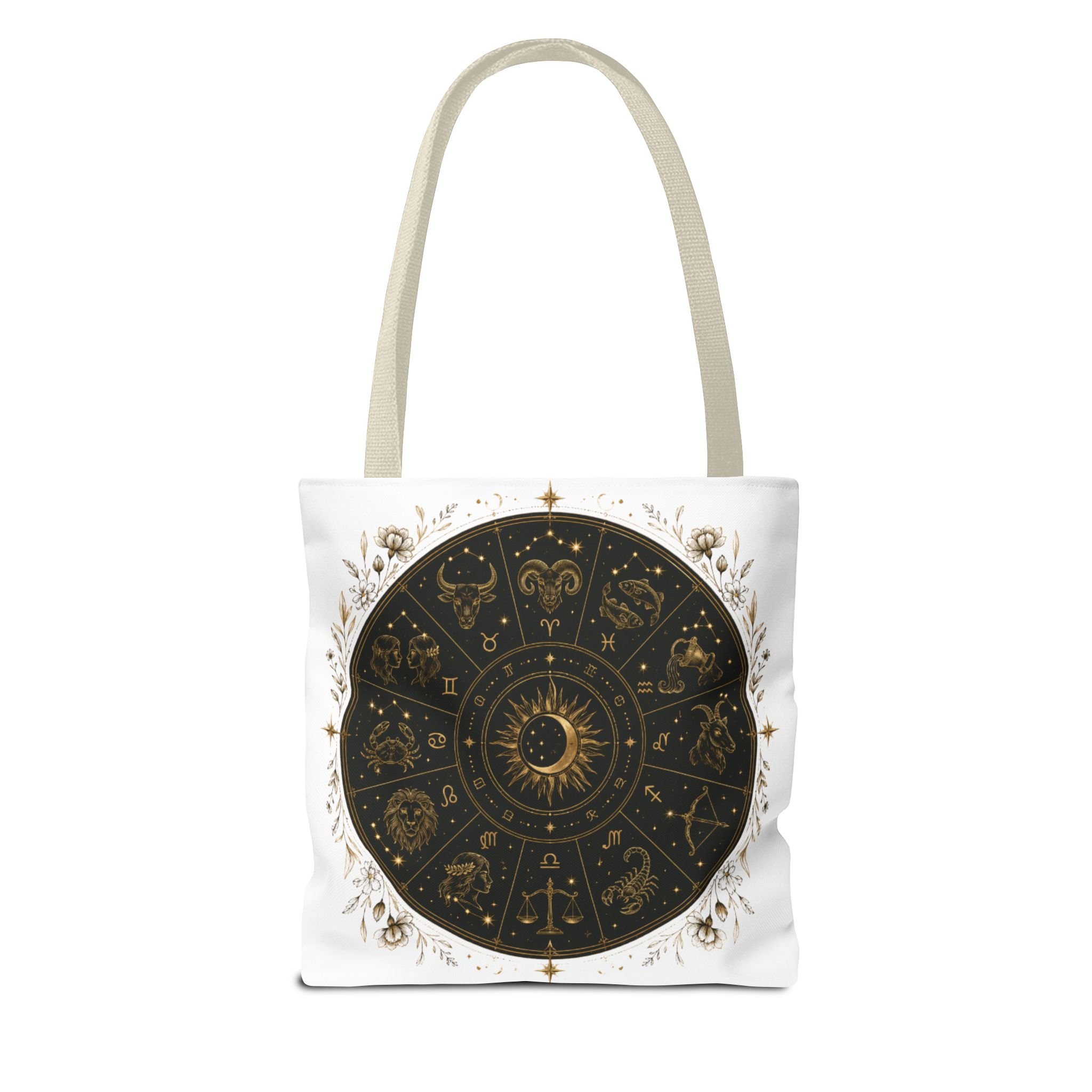 Zodiac Wheel Tote Bag — Gold Celestial Astrology Design