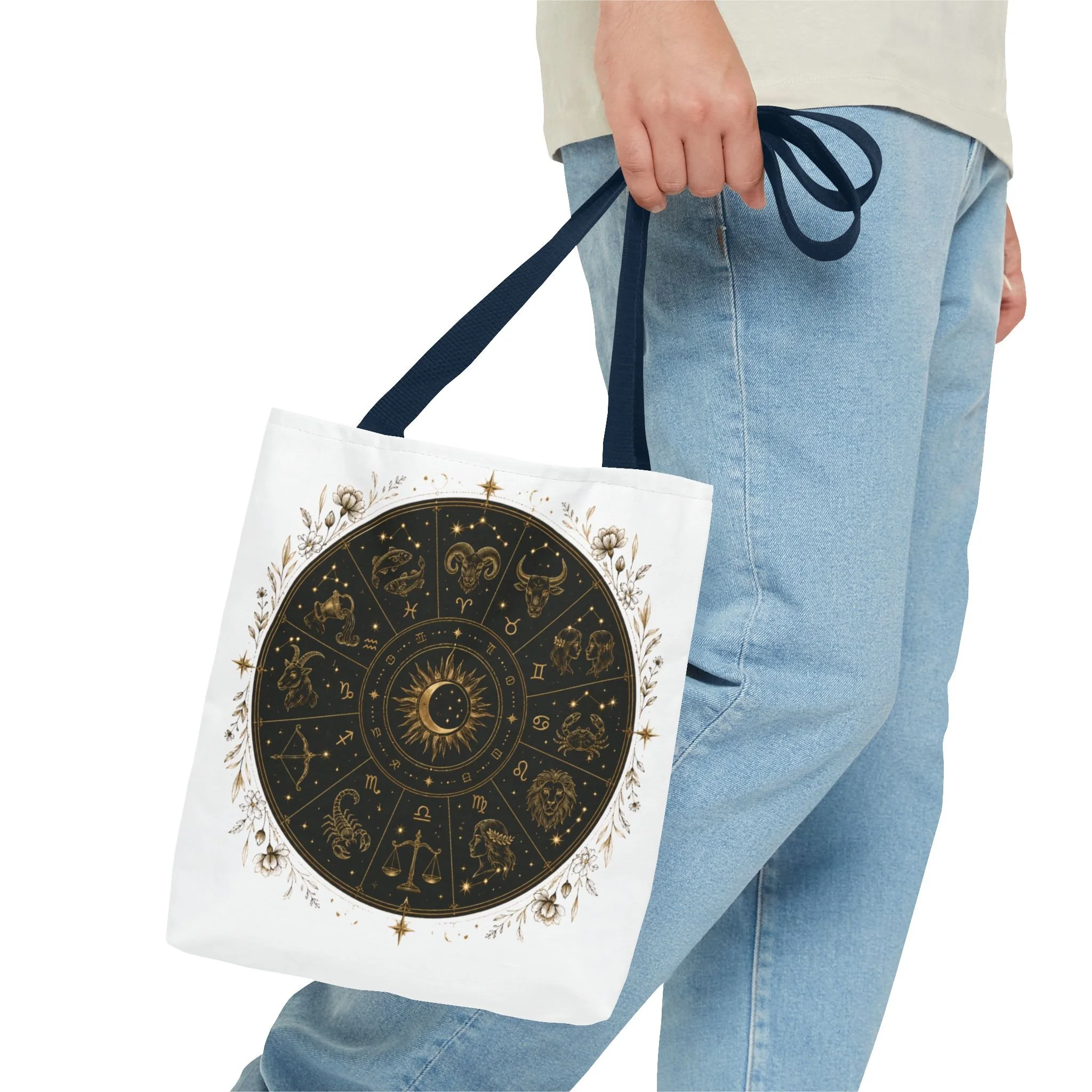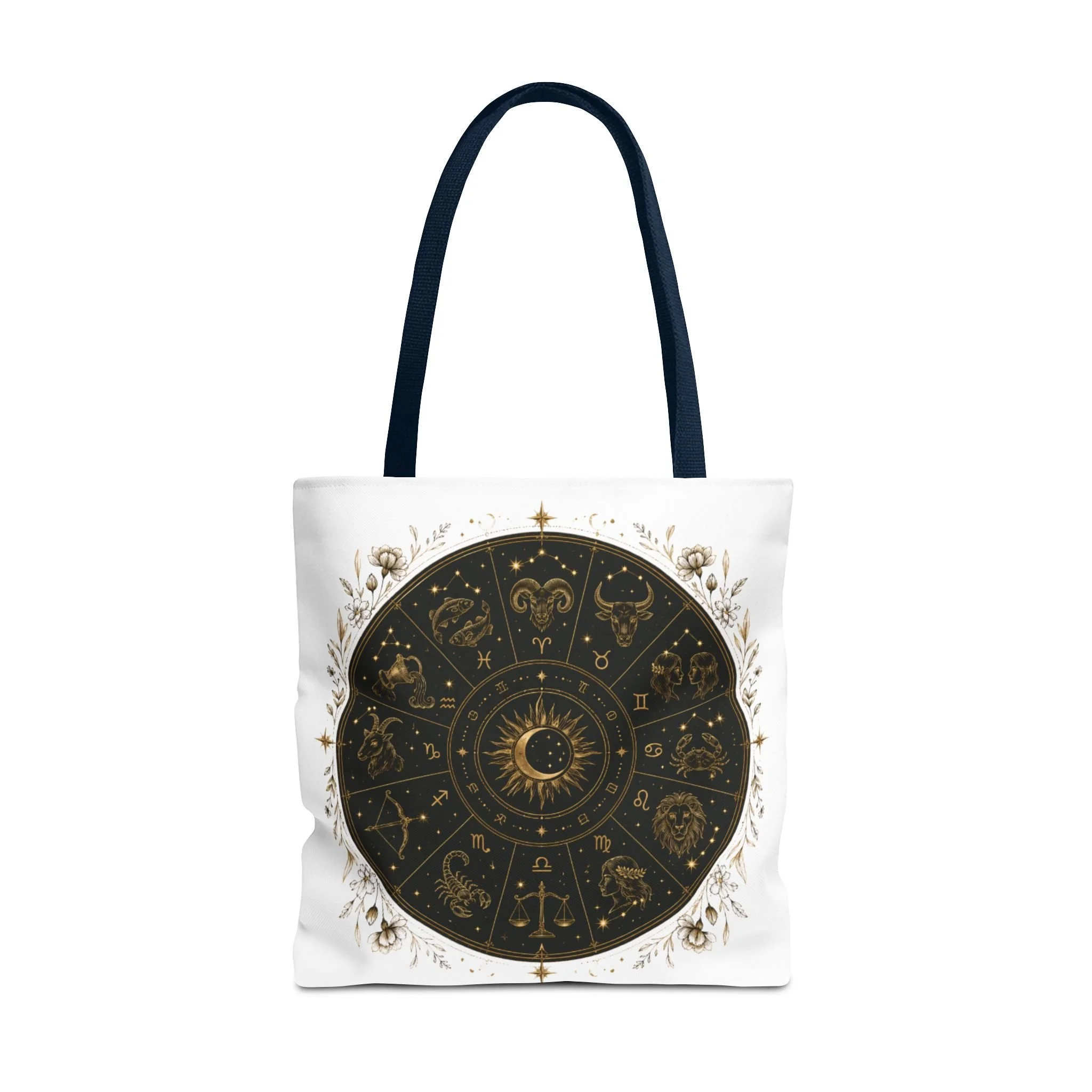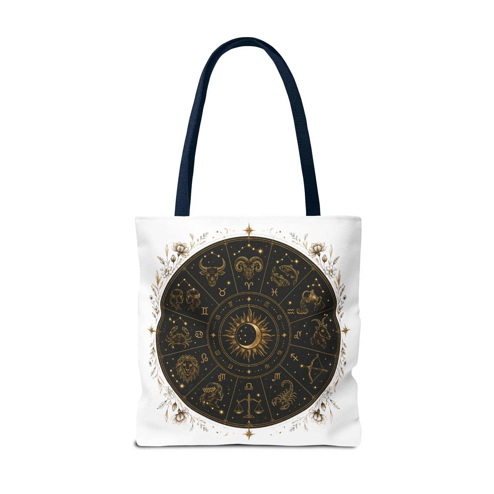 This canvas-style tote is great for daily errands, farmers' markets, books, tarot decks, crystals, journals, groceries, or everyday essentials. Its celestial aesthetic makes it a stylish and meaningful accessory for anyone who loves astrology, spirituality, and starry night designs.